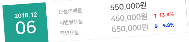 어제그리고 작년오늘 직원별 구분을통해 매출통계를 한눈에 쉽게 파악할수 있습니다.